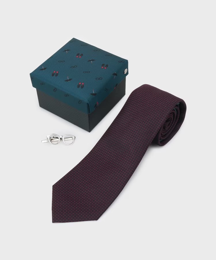 「TAKEO KIKUCHI(タケオキクチ)」の“眼鏡型タイバー付き バスケットムジチェンジネクタイBOX”は、シンプルでありながら個性的なデザインが魅力のアイテム。